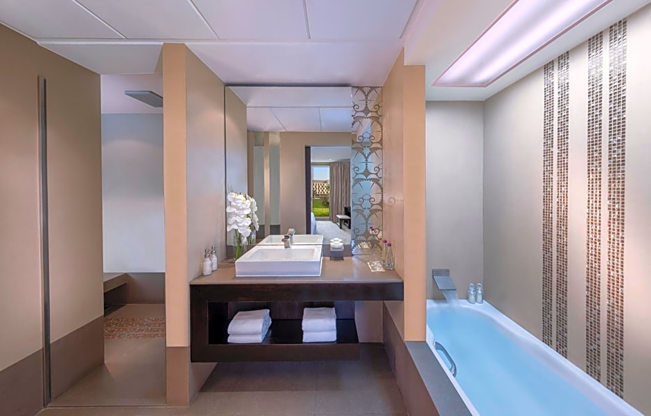 A magnificent suite located in the south building with a spacious bathroom and a walk-in shower. Separate living and dining areas are available, featuring a large executive desk with essential business tools an electronic mirror TV in the bathrooms.